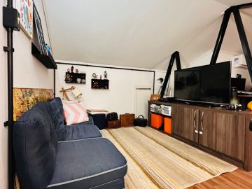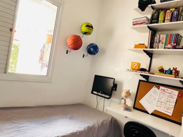 Localizada no condomínio Moradas Club I, a casa possui 3 quartos, 1 banheiro, cozinha com área ampliada e móveis planejados, pátio em L com teto de vidro, super ensolarado, mezanino com 18m² adicionais com sala de estar e escritório, depósito, acesso por fechadura eletrônica. Além dos móveis da cozinha, ficam no imóvel o balcão da sala de jantar, guarda-roupas do quarto de casal e quarto de solteiro, 4 ares condicionados. Possui 1 vaga de garagem.