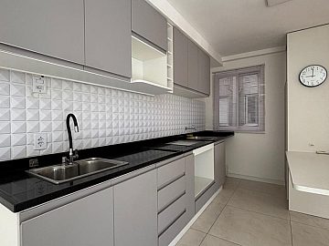 - Móveis planejados de bom gosto na cozinha e banheiro