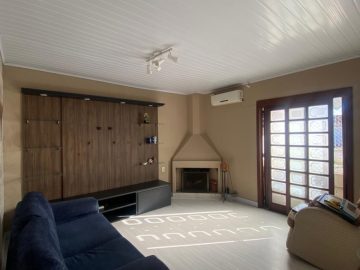 São 149,35m² de área construída, distribuída em uma sala ampla com lareira e ar condicionado, 3 dormitórios (sendo 1 suíte), banheiro social, cozinha com sala de jantar e móveis planejados, quartos com escrivaninha, roupeiro e prateleiras, área de churrasqueira com lavabo e lavanderia, garagem fechada e pátio para aproveitar de muitos momentos ao ar livre.